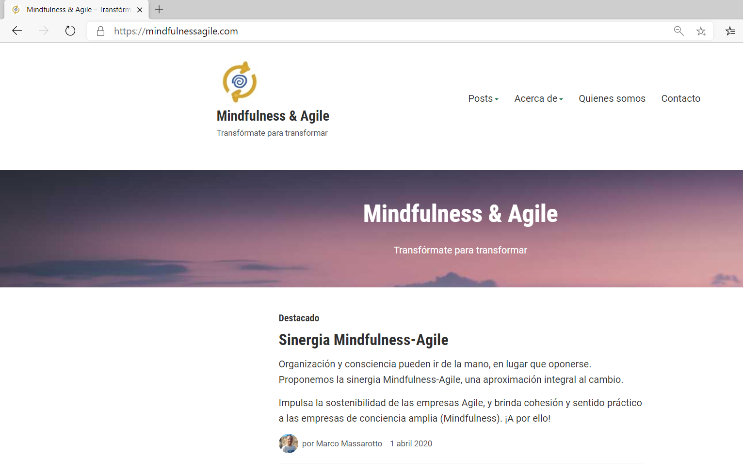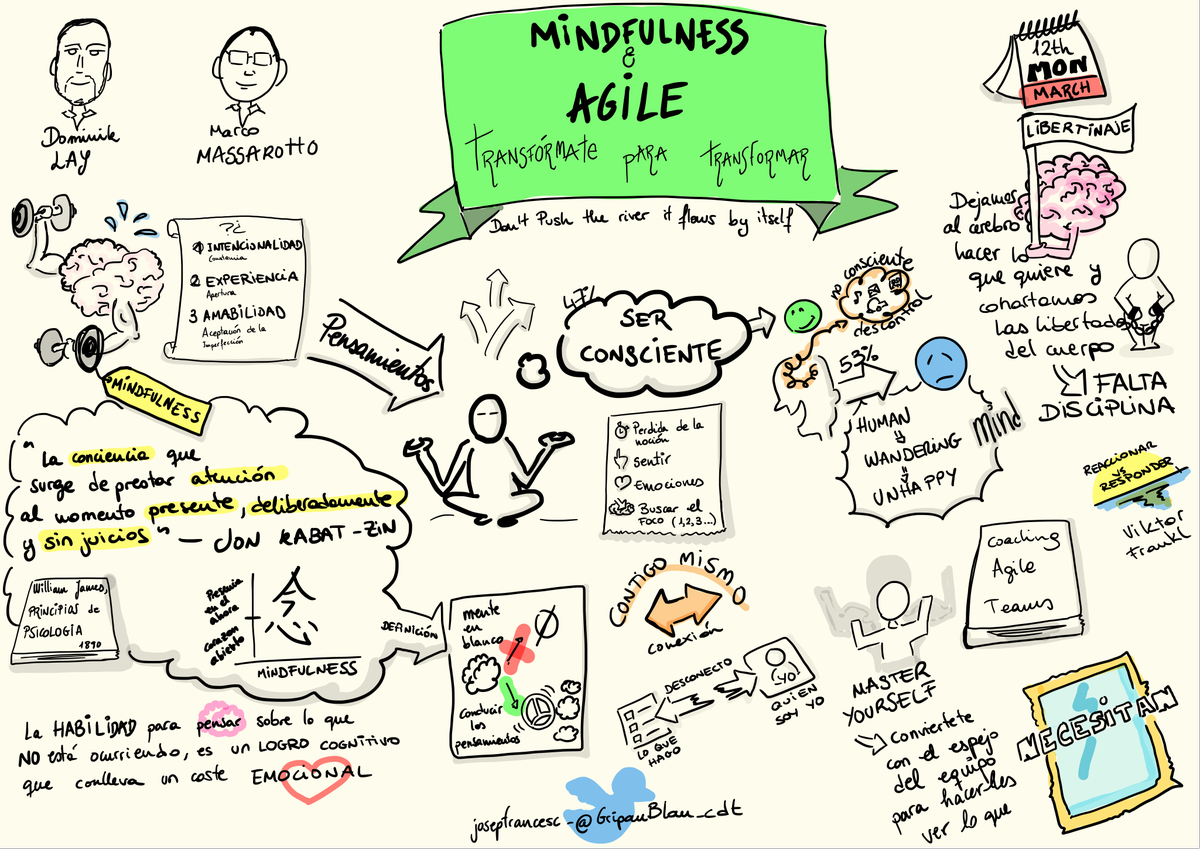 📰 Noticia. 📽️ Vídeo.El desarrollo humano (basado en Mindfulness) y el organizacional (basado en Agile) van de la mano: se realimentan positivamente. El cambio personal reta el status quo de las empresas, así como la introducción de la agilidad exige a las personas reinventarse. La sinergia Mindfulness-Agile es un modelo que hace explícito este vínculo; e invita a un colaboración activa, consciente y ajustada a los tiempos que vivimos.