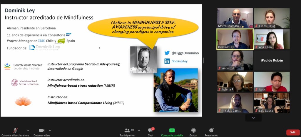 Clases de Mindfulness en las Organizaciones en la 14ª edición del programa de formación Dinamizador de la Economía Sostenible, de DynamisLAB.